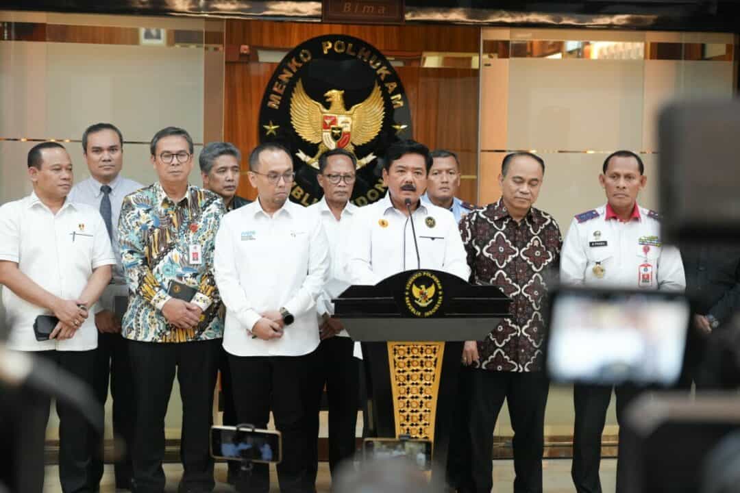 Menkopolhukam Hadi Tjahjanto saat konferensi pers terkait hasil rapat perdana Satgas Pemberantasan Perjudian Daring di Kantor Kemenko Polhukam, Jakarta Pusat, Rabu (19/6/2024). (Foto: Kemenko Polhukam).