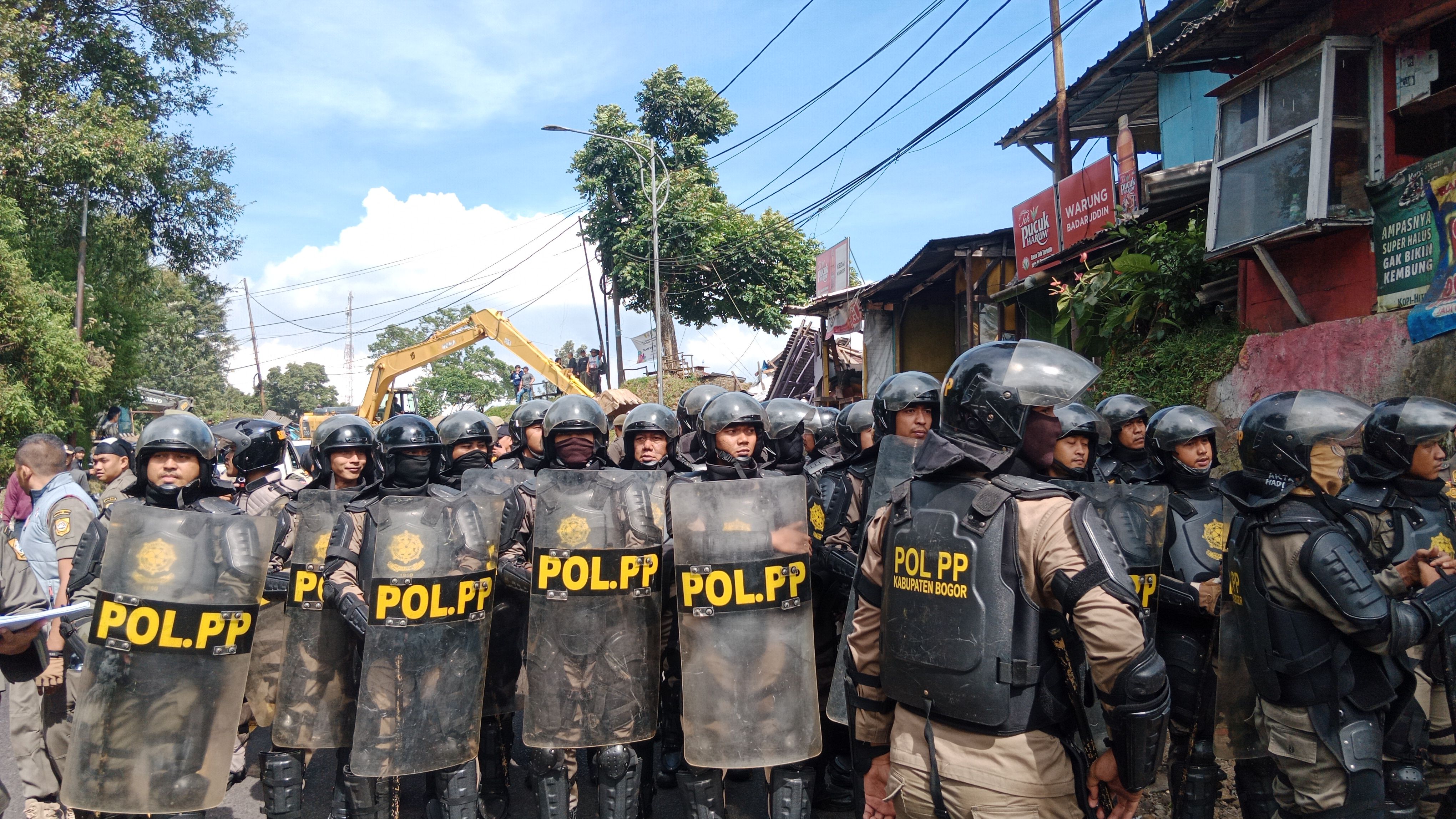 Berdasarkan informasi, terdapat 300 lebih lapak pedagang yang diratakan oleh petugas gabungan dari Satpol PP Kabupaten Bogor bersama TNI-Polri.