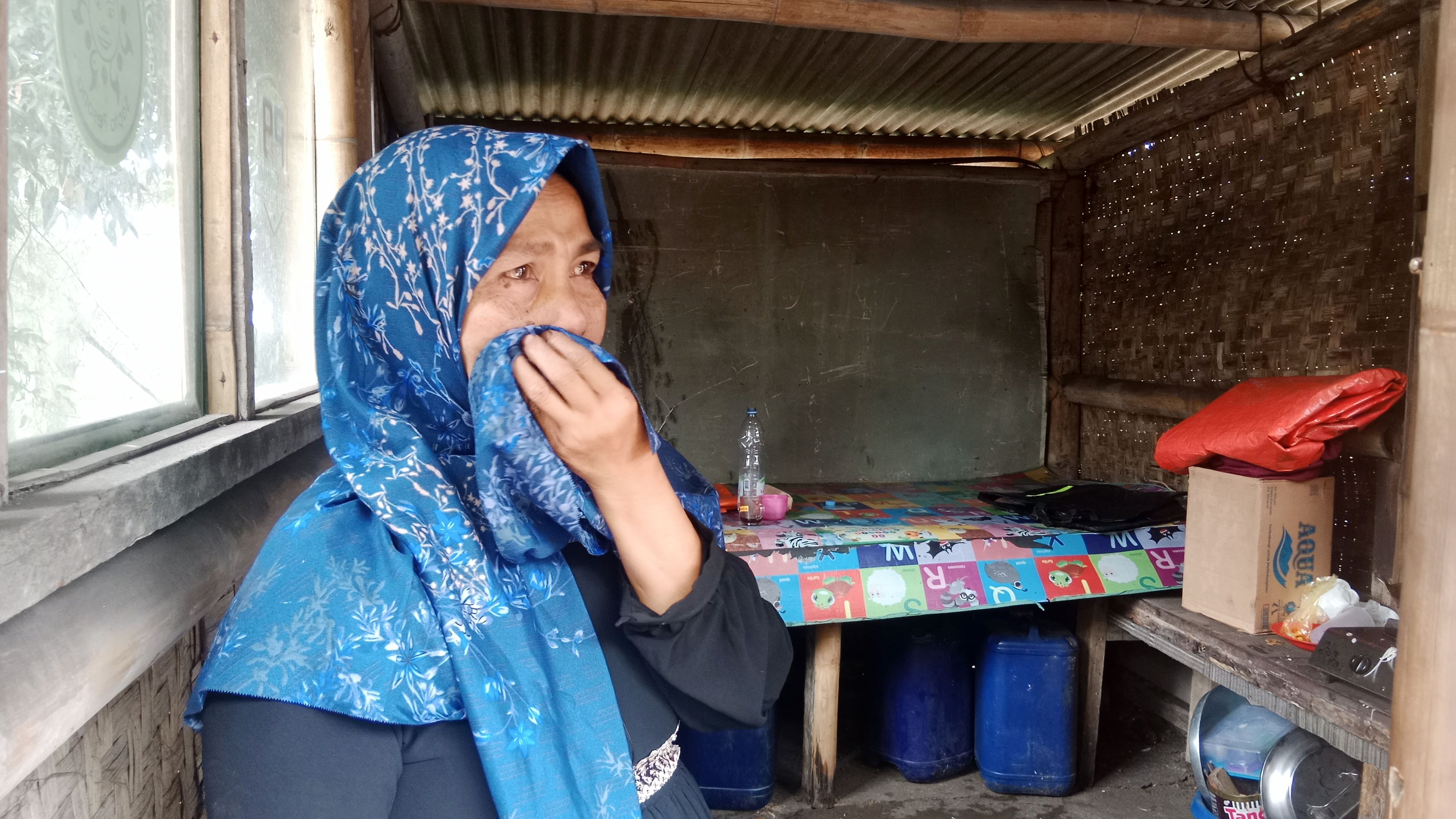 Karena tak tahu lagi harus kemana, Sri Hayati dan suaminya kini terpaksa memilih tidur di sebuah pos yang terbuat bambu, yang tak jauh dari bekas lapaknya.