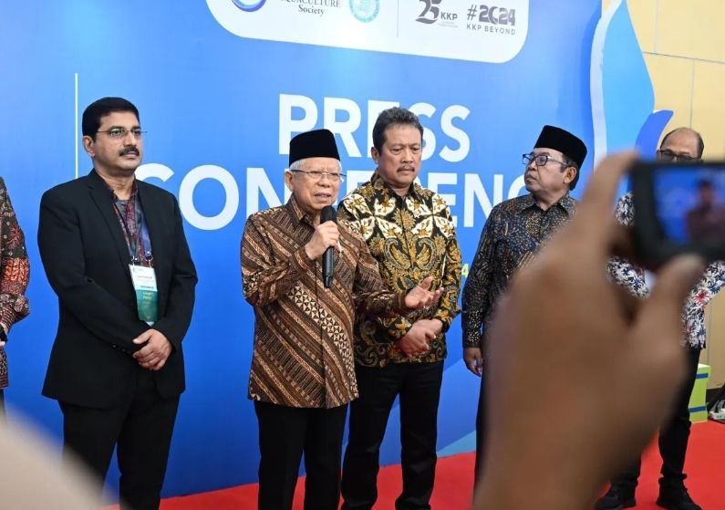 Wakil Presiden Ma'ruf Amin saat menghadiri acara Konferensi dan Expo Asian-Pacific Aquaculture 2024 di Grand City Hall Convention, Surabaya, Kamis (4/7/2024). (Foto: BPMI Setwapres).