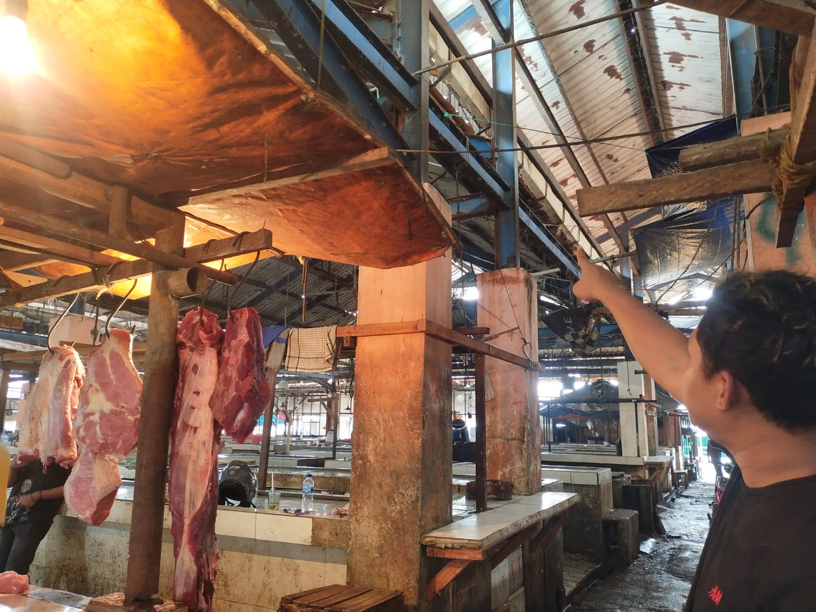 "Makanya di dalam los ini lapak saya dibuat atap terpal untuk melindungi daging, jadi kalau bisa segeralah diperbaiki," katanya.