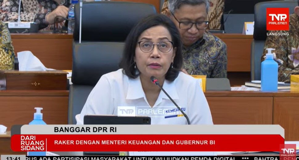 Menteri Keuangan Sri Mulyani Indrawati saat Rapat Kerja Badan Anggaran (Banggar) DPR di Jakarta, Senin (8/7/2024). (Tangkap layar YouTube TV Parlemen)
