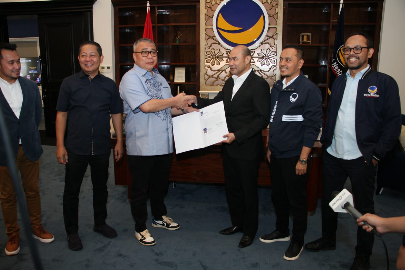 Partai NasDem saat menyerahkan surat rekomendasi untuk Ahmad Ali di Pilgub Sulteng. Foto DPP NasDem