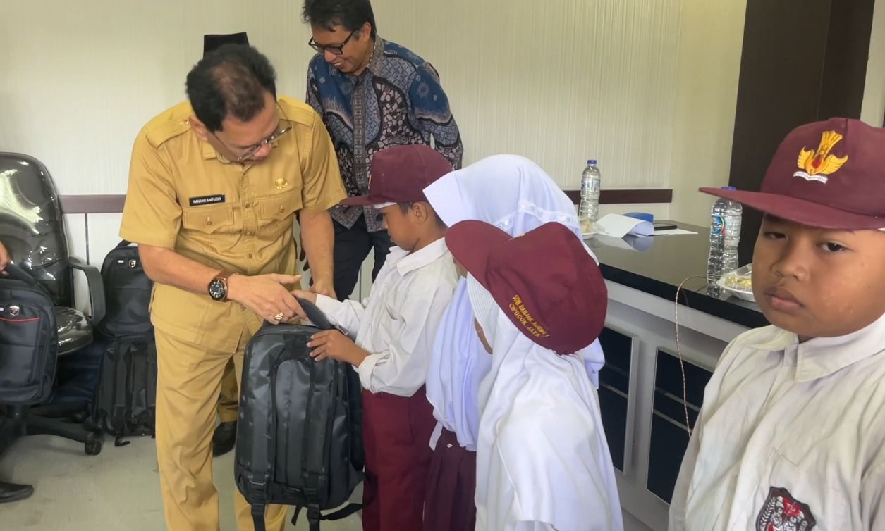 Sekretaris Daerah Kota Serang, Nanang Saefudin Berikan Tas ke Sejumlah Siswa