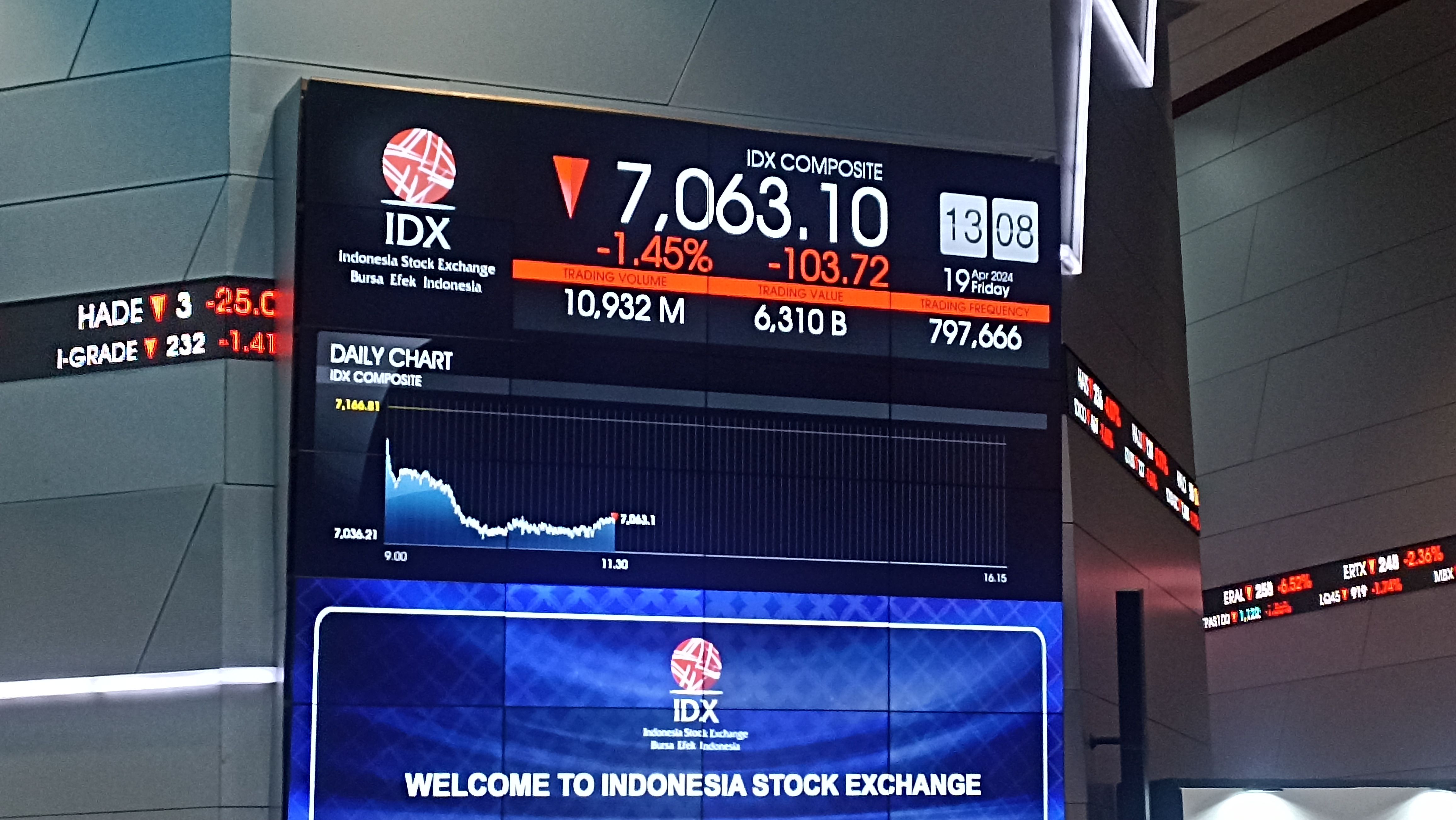 Jakarta, tvrijakartanews - PT Bursa Efek Indonesia (BEI) menyampaikan data perdagangan saham BEI selama periode 15 Juli hingga 19 Juli 2024 ditutup pada zona merah. Selama sepekan, perubahan terjadi pada pergerakan Indeks Harga Saham Gabungan (IHSG) sebesar 0,45 persen pada posisi 7.294,495 dari 7.327,580 pada penutupan pekan lalu.