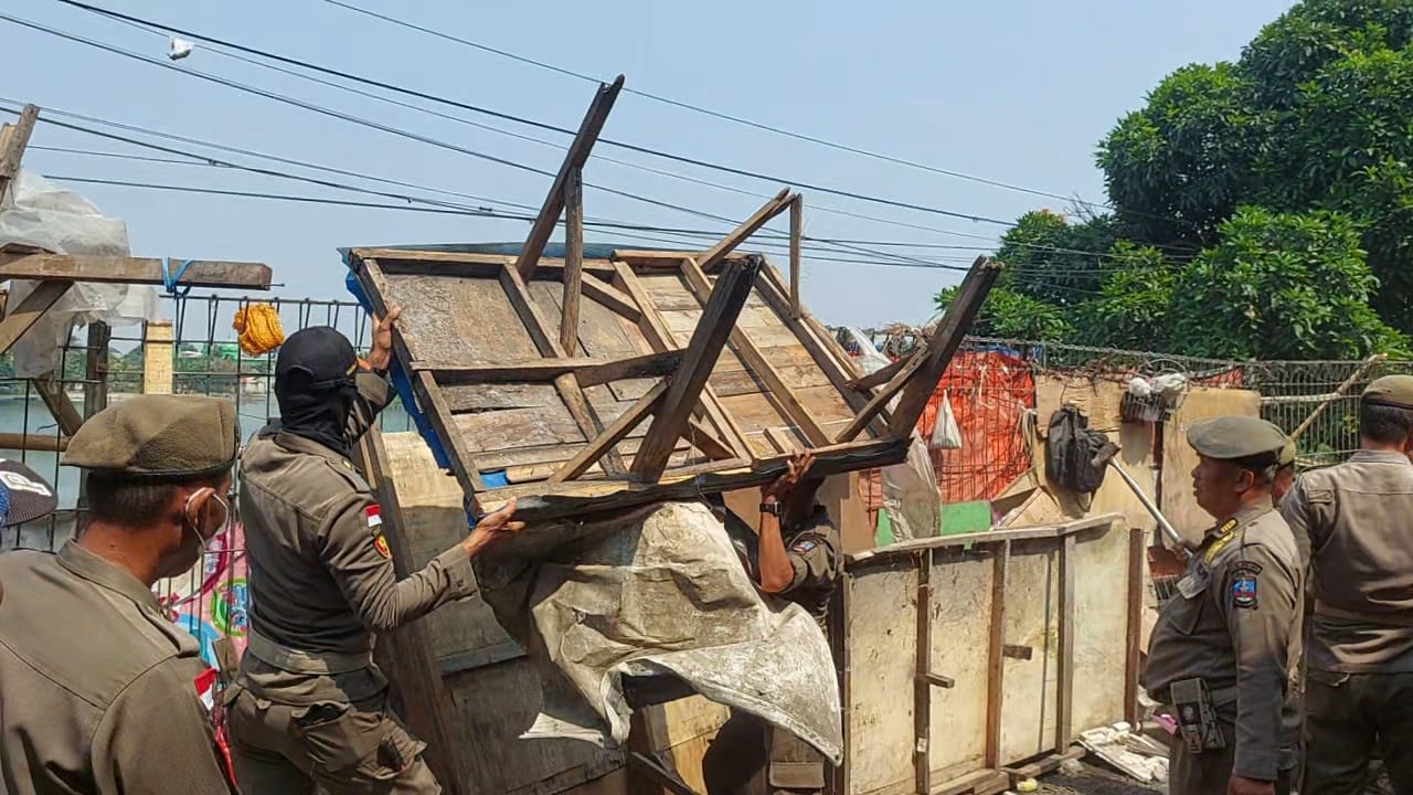 Lapak pedagang di Pasar Cikande saat dibongkar Satpol PP
