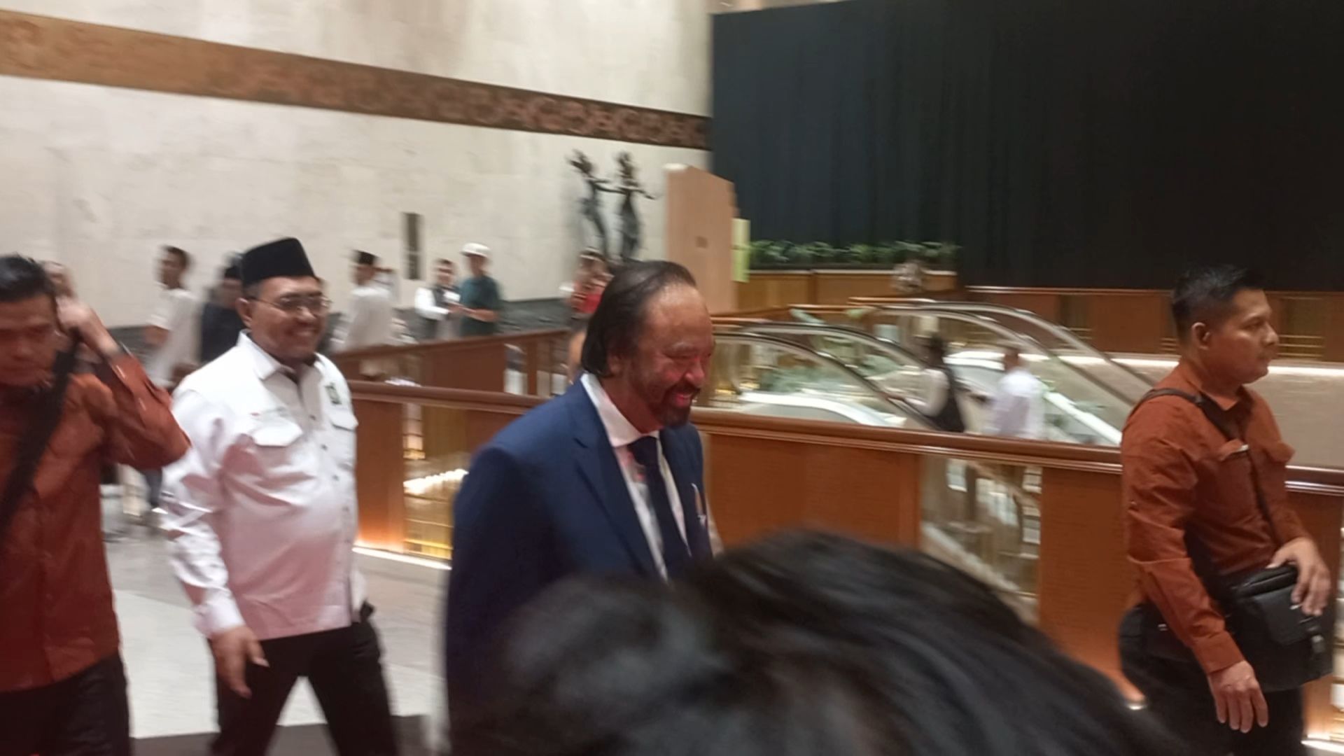 Ketua Umum Partai Nasdem Surya Paloh saat menghadiri acara Hari Lahir (Harlah) ke-26 PKB di Jakarta Convention Centre (JCC), Senayan, Jakarta Pusat, Selasa (23/7/2024) malam. (Foto: Chaerul Halim).
