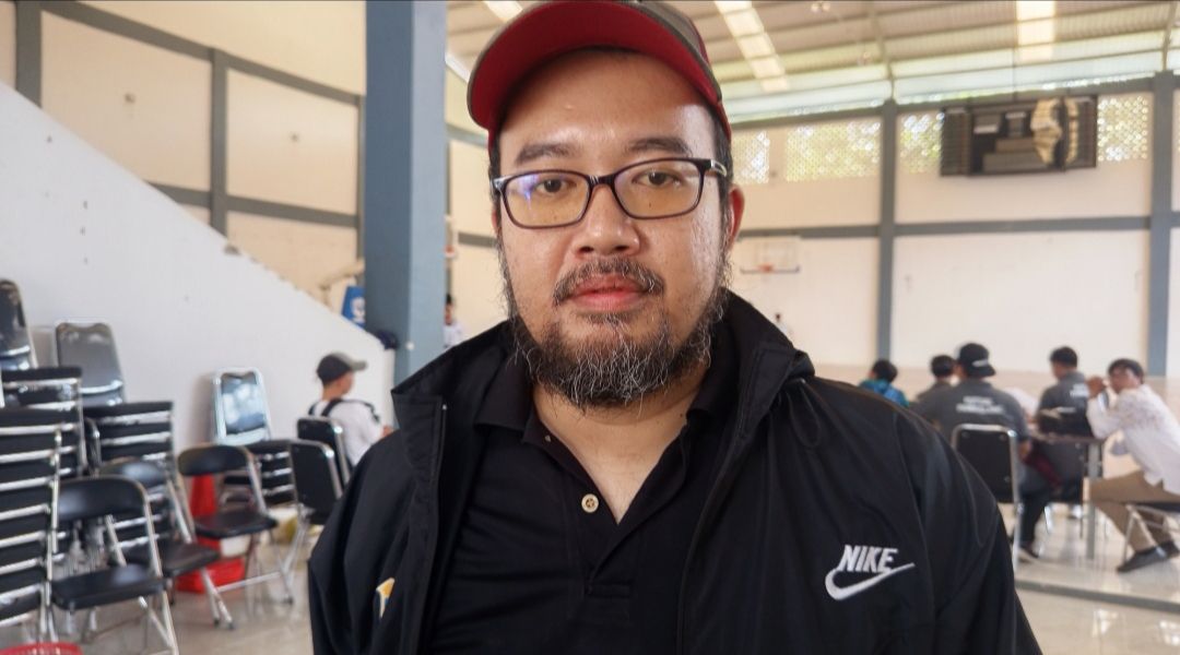 Ketua AFK Pandeglang, Rahmat Akbar Mujahidin saat memantau langsung Seleksi Atlet Futsal untuk Gabung Timnas (Sumber: Tb Agus Jamaludin)