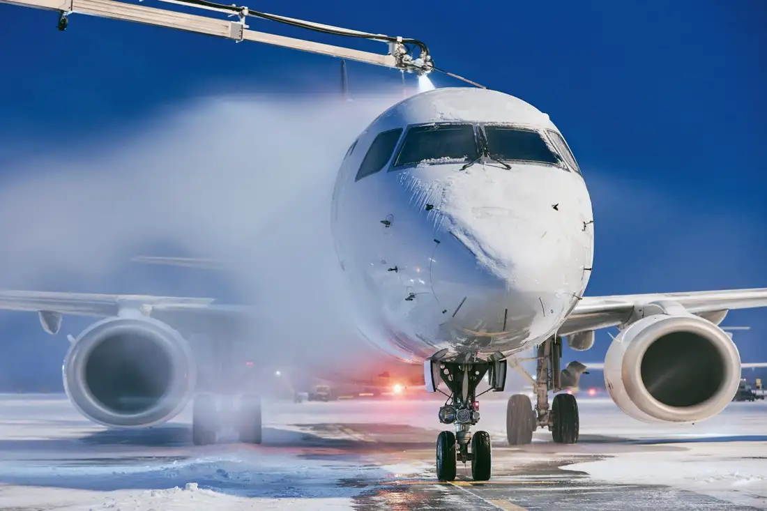 Gambar: Pesawat biasanya dicairkan dengan menyemprotnya dengan antibeku (Jaromir Chalabala/Alamy)